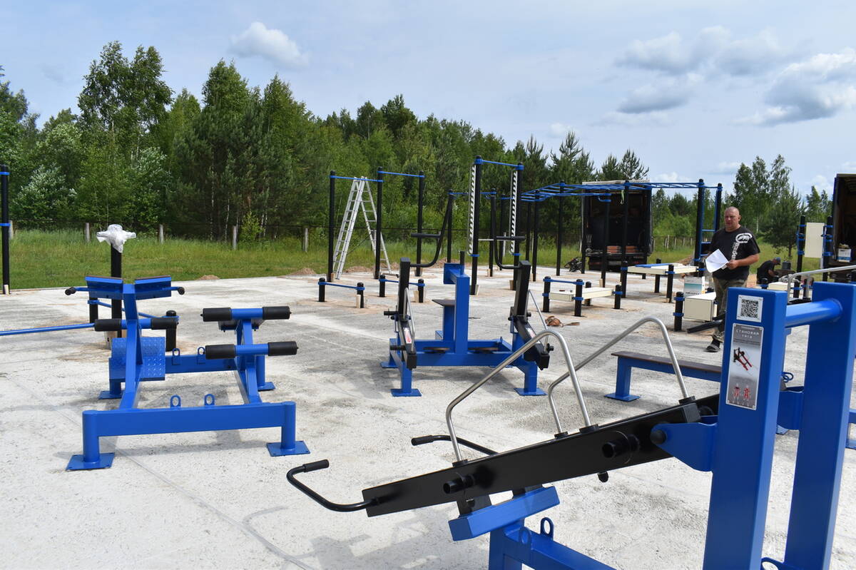В эти дни на подготовленной бетонной площадке идет установка 19 современных спортивных тренажеров, монтаж травмобезопасного покрытия на площади 280 кв.м.