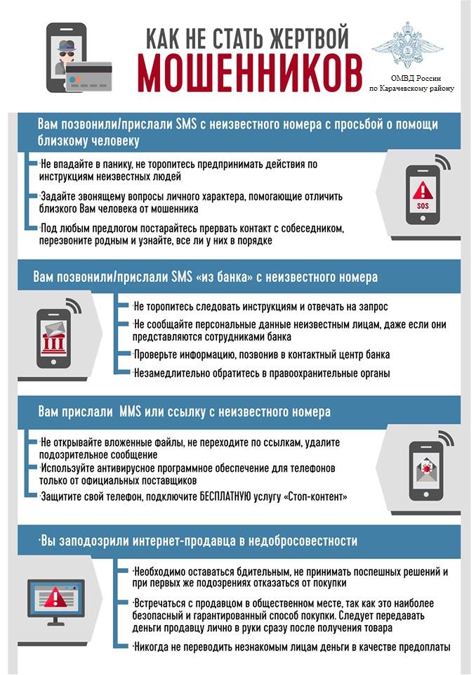 Помните, что единственная организация, которая сможет проинформировать вас о состоянии вашей карты – это банк, обслуживающий ее. Если у вас есть подозрения о том, что с вашей картой что-то не в порядке, если вы получили смс-уведомление о ее блокировке, немедленно обратитесь в банк. Телефон клиентской службы банка обычно указан на обороте карты. Не звоните и не отправляйте сообщения на номера, указанные в смс-уведомлении, за это может взиматься дополнительная плата.