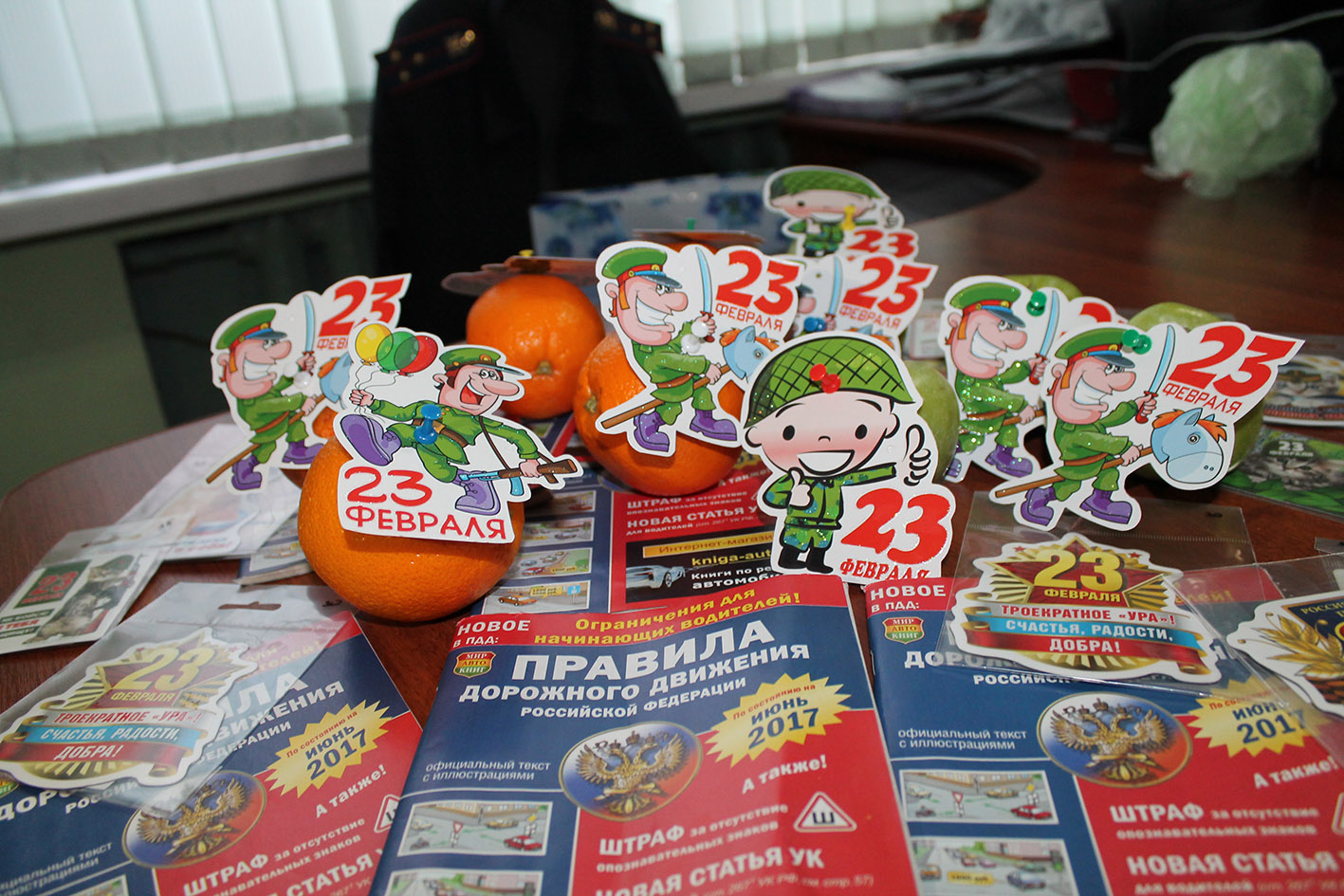 В преддверии Дня защитника Отечества сотрудники Госавтоинспекции Карачевского района совместно с журналистами «Зари» поздравили мужчин-водителей с 23 февраля.