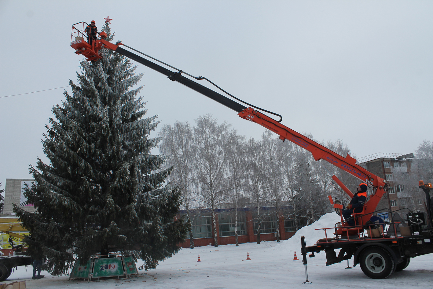 Трудились над установкой символа новогодних каникул работники ООО «Управдом», ООО «Брянкэлектро», МУП КГП «Коммунальное хозяйство». Они же с помощью вышки повесили гирлянды. Игрушками и мишурой украсили ель сотрудники районной администрации.
