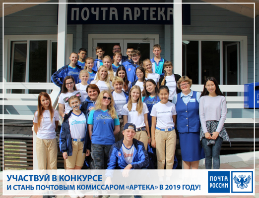 В 2019 году в каждой из 15 артековских смен появятся от 10 до 15 почтовых комиссаров – победителей творческого конкурса «Открой свою Дверь синего цвета». Участники конкурса — дети в возрасте от 14 до 16 лет включительно — смогут попробовать свои силы в следующих номинациях: