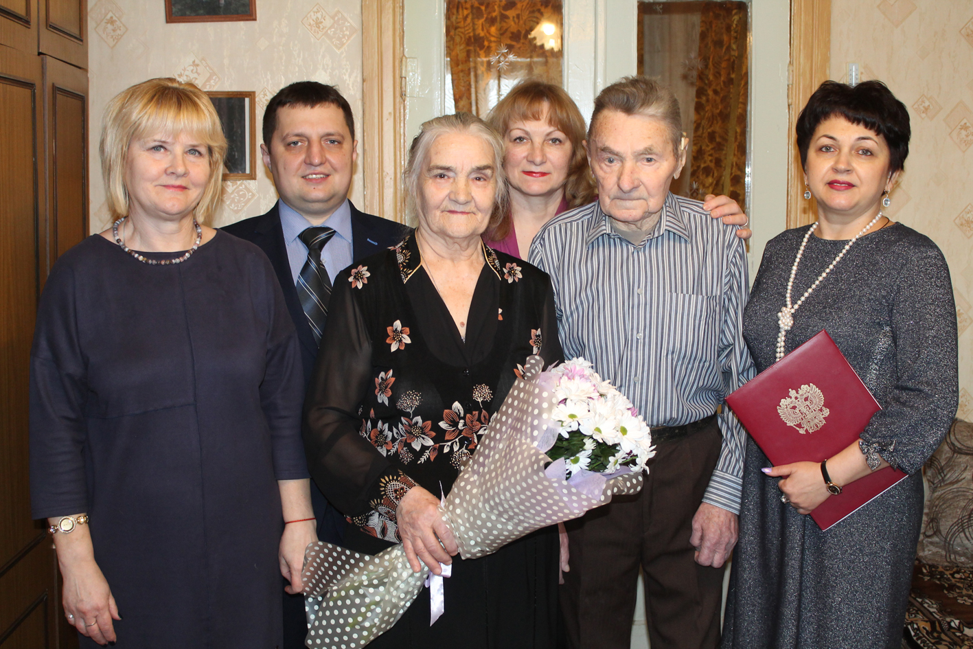 После того как супруги поставили подписи в Книге почетных юбиляров и получили свидетельство о заключении «бриллиантового» брака, а также почетную грамоту администрации Карачевского района, их поздравили все присутствующие. С пожеланиями крепкого здоровья и дальнейшей счастливой семейной жизни юбилярам был вручен подарок. (12+)