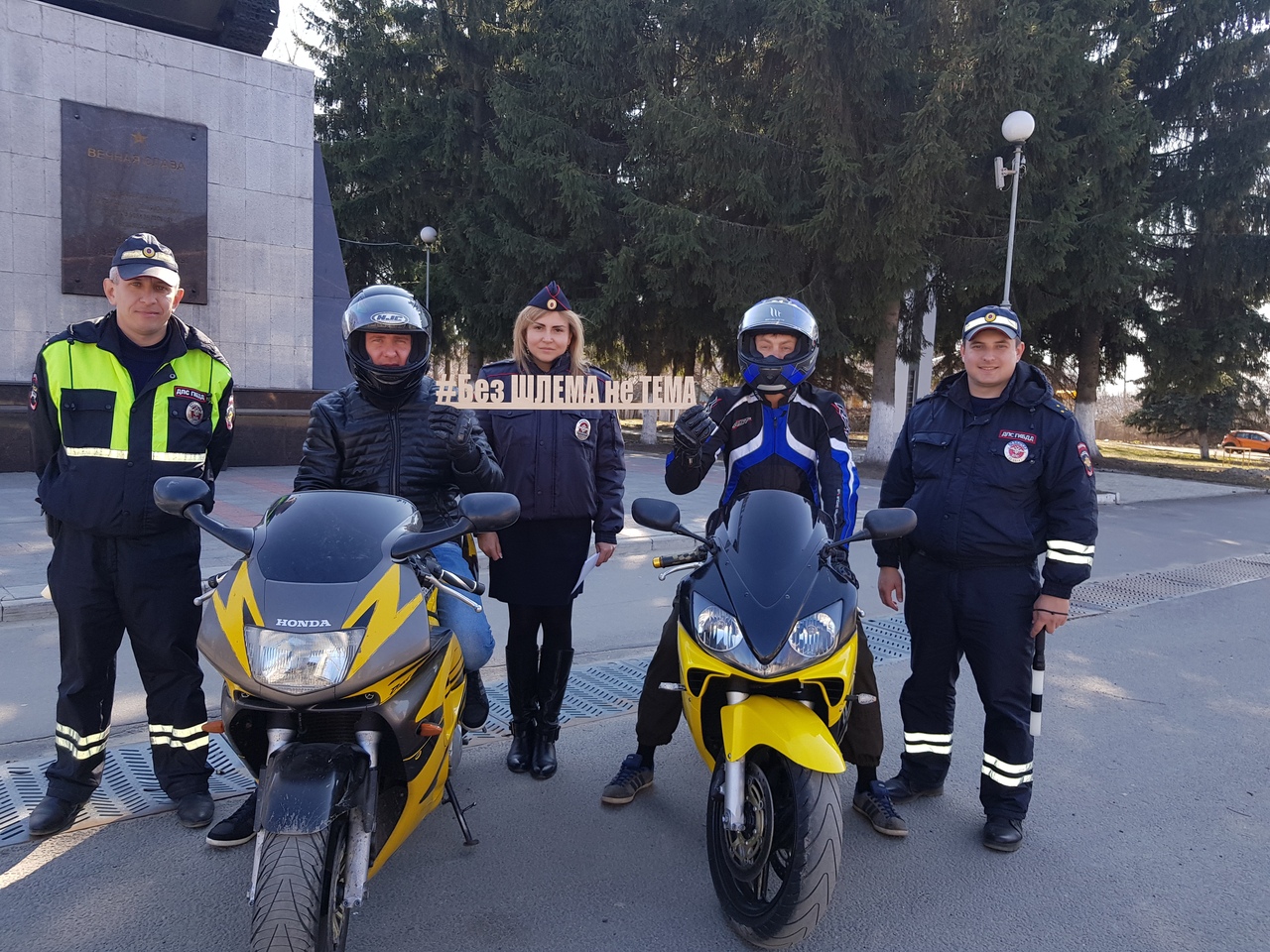 Карачевские байкеры сфотграфировались с тематическим хештегом #БезШЛЕМАнеТЕМА , чтобы привлечь внимание к проблеме аварийности и необходимости соблюдения безопасности при управлении мототранспортом.