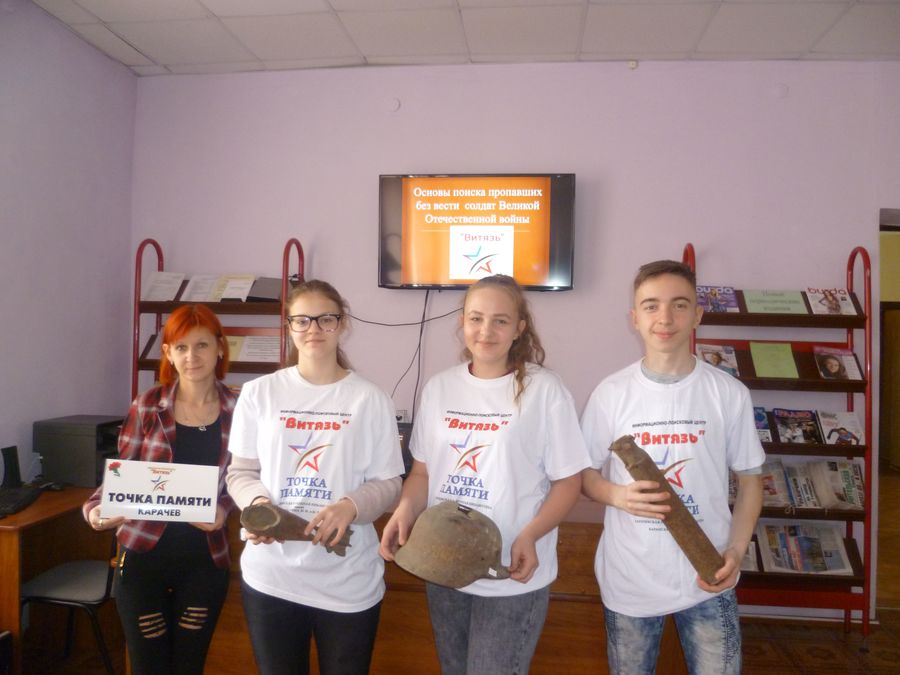 Работая при Карачевской районной библиотеке, ученики старших классов находят информацию в таких базах данных как «Мемориал» и «Подвиг народа».