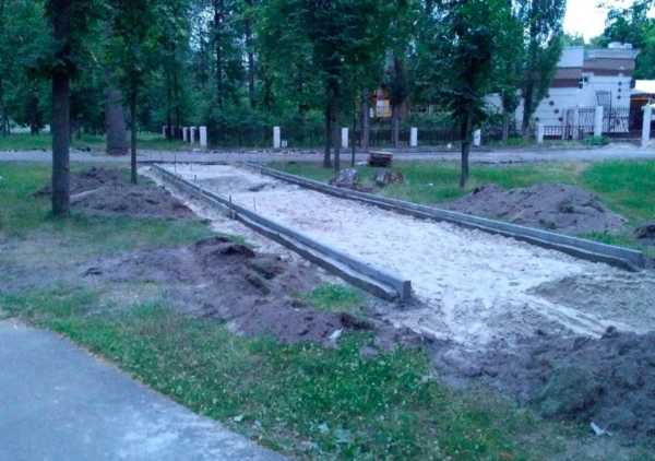 В парке уже провели кронирование и спил опасных деревьев, убрали старые аттракционы. Рабочие приступили к пешеходным дорожкам, идёт установка бордюрного камня.