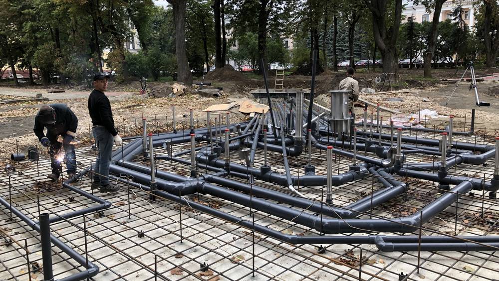 Прежний фонтан был, по сути, без чаши, из-за этого вода протекала в землю и заболачивала местность. Когда началась реконструкция, тяжелые трактора вязли в болотистой почве. Теперь, как пояснили рабочие, бетонная чаша не пропустит воду, а сам фонтан будет радовать горожан красивой игрой водяных струй. 0+