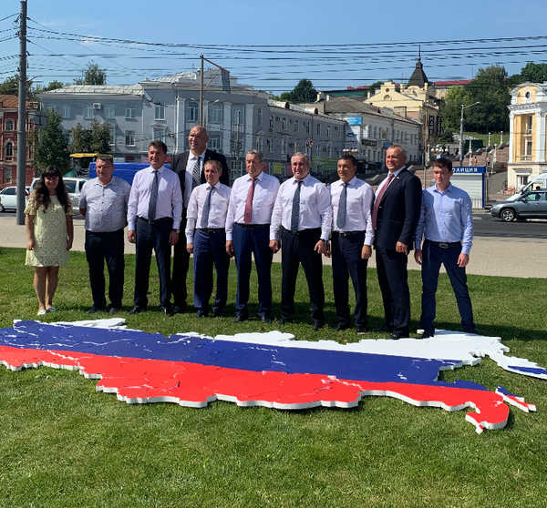Его участники должны были собрать карту страны из фрагментов в форме регионов России. Объединенная модель государства состояла из цветов российского триколора.