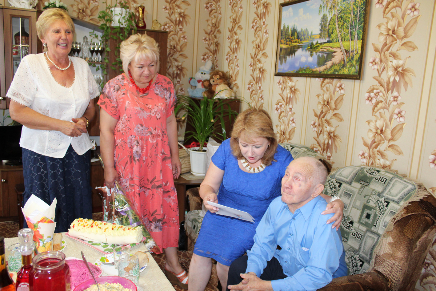4 сентября фронтовика, инвалида Великой Отечественной войны Василия Ефимовича Марусова с 95-летним юбилеем пришли поздравить глава Карачевского района Г.Н.Волосатова, председатель районного совета ветеранов войны и труда Р.С.Гарбузова, директор Центра социального обслуживания населения С.В.Ничипурук.