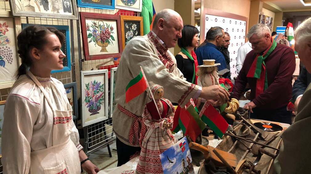Здесь представлены экспозиции от белорусского землячества. Они же организовали увлекательную викторину, в которой гости угадывают названия предметов старинной утвари и ее использование в быту. Здесь же представители армянской, азербайджанской, еврейской культуры демонстрируют свои национальные атрибуты.