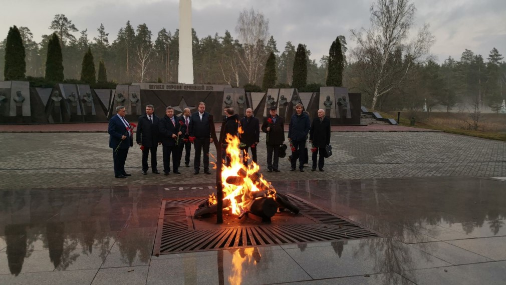 Замминистра транспорта РФ Алексей Семенов вместе с брянским руководством возложил цветы к вечному огню на Партизанской поляне и минутой молчания почтил память погибших защитников Родины.