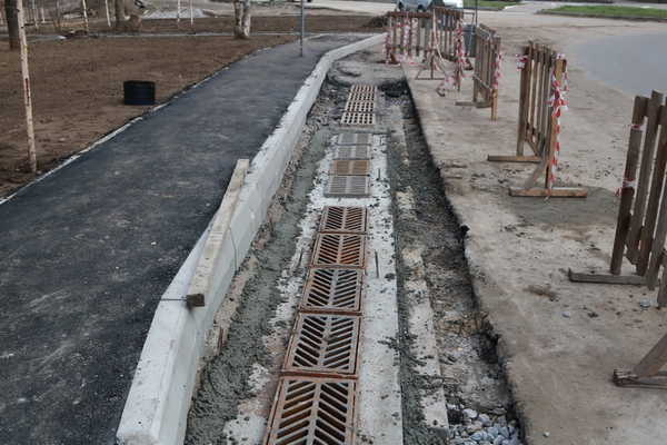 При строительстве обустроили дополнительные приёмные колодцы в пониженных местах микрорайона, где во время дождя скапливалось больше всего воды. После прокладки канализации на объекте выполнили работы по благоустройству. Строители восстанавливали не только разрушенные тротуары, но и газоны. 12+