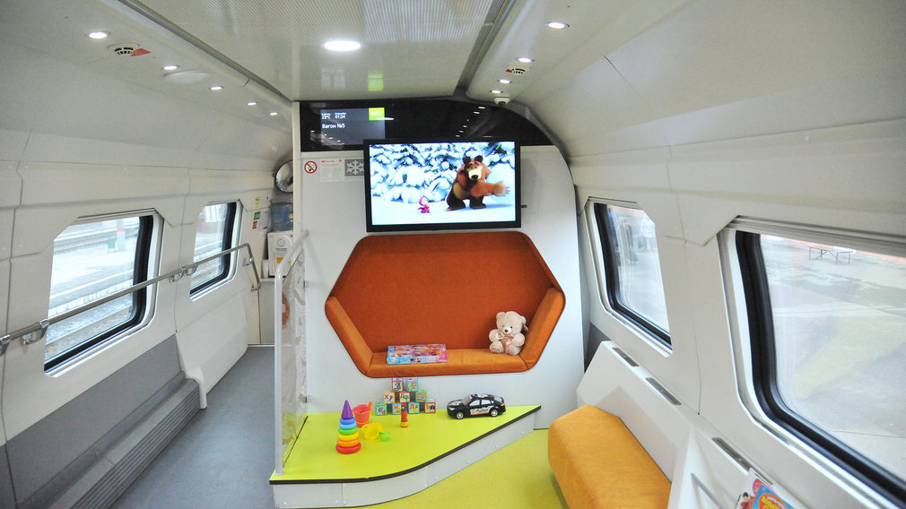 Во всех составах двухэтажных поездов «Иван Паристый» можно, обратившись к проводнику, получить книгу библиотеки юного путешественника, где собрана литература для детей от 5 до 14 лет. С 1 февраля вагоны обустроят детскими игровыми комнатами, в которых будут детские диваны, телевизоры, игрушки, столы и стулья. 6+