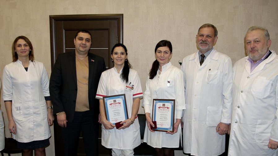 В преддверии Нового года за многолетний добросовестный труд депутат-единоросс Брянской областной Думы Евгений Саттаров в присутствии главврача Александра Афанасьева и его замов в торжественной обстановке вручил почётные грамоты и памятные медали областной Думы старшей медсестре реанимации и интенсивной терапии Лидии Суровцевой и фельдшеру-лаборанту отделения клинической лабораторной диагностики Людмиле Кузнецовой. 12+