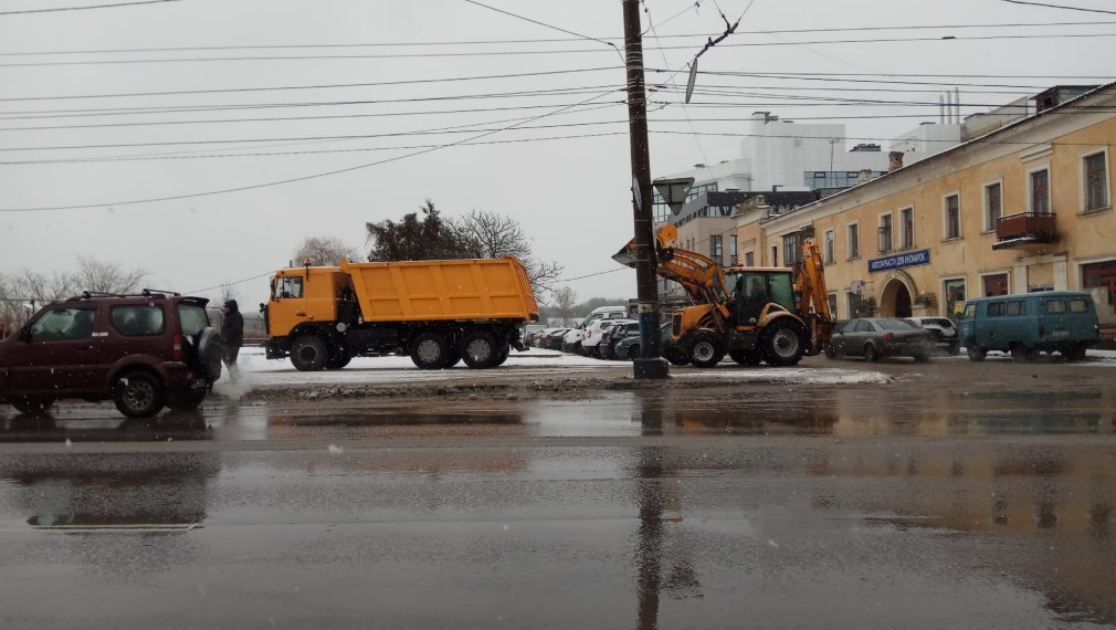Сегодня днем в Брянске обильный снегопад заставил активизироваться городские службы.