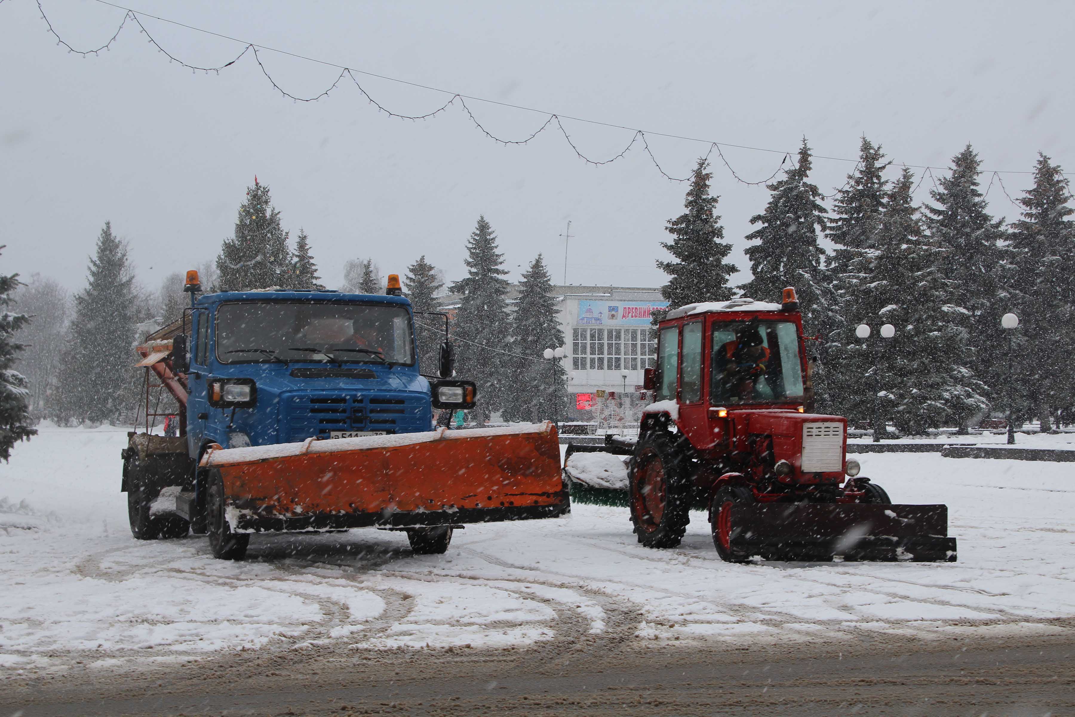 К 10.00 все улицы города были очищены от снега грейдерами – ДЗ-143 и ДЗ-201 и обработаны песко-соляной смесью. Центральную площадь, игровые детские площадки от снега убирал трактор Т-25. Дворники расчищают снег в жилом секторе. Весь собранный снег вывозят в специально отведенные места за город. Всего работает 10 единиц спецтехники и 12 дворников. 12+