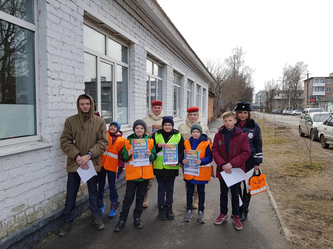 После этого отряд ЮИД, юнармейцы и полицейские возле регулируемого пешеходного перехода обратились с призывом к прохожим соблюдать ПДД .