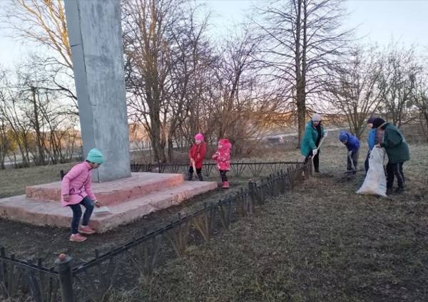 В Жуковской Речице прошел субботник. Работники местного Дома культуры привели в порядок территорию у обелиска погибшим в Великой Отечественной войне.