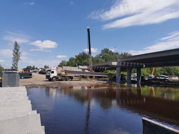 В Бежицком районе Брянска продолжается строительство нового Литейного моста. Несмотря на сложные гидрологические условия, движение по Литейному мосту откроют в конце августа.