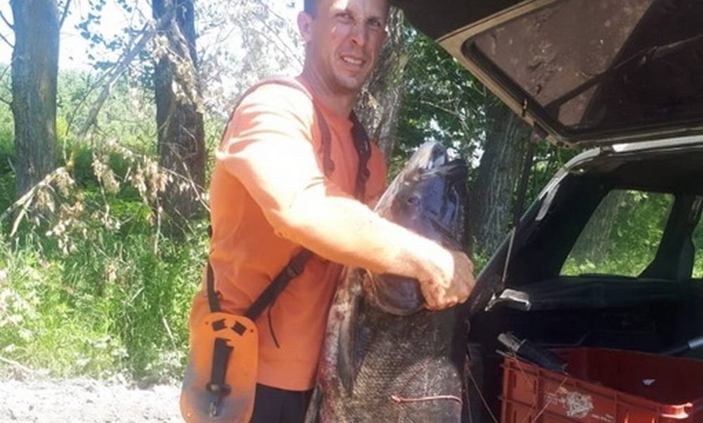 Житель Брянска поймал в Десне гигантскую рыбу. Снимки улова выложили в соцсети.