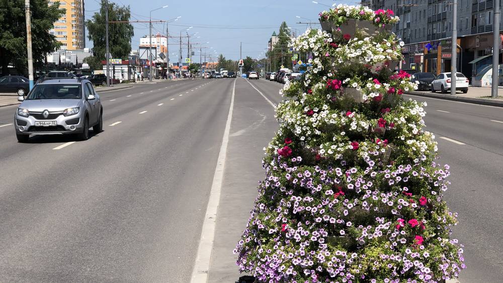 На Авиационной улице в Брянске установили 5 стоек вертикального озеленения. Неприхотливые цветы на участке от кольцевой развязки до торгового центра «Айсберг» служат разделительным ограждением.