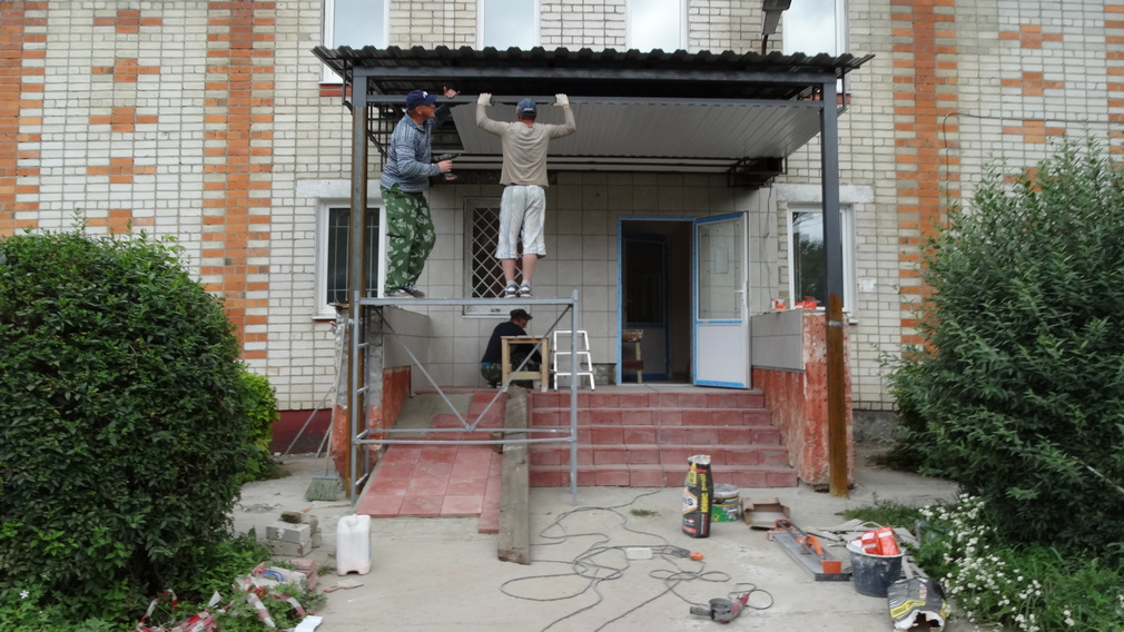В коридоре и кабинетах уложат новый линолеум. В санузлах заменят плитку и сантехнику. Внутри здания рабочие выравнивают и красят стены. Вместо шифера на крыше от непогоды здание защитит профлист.Кроме того, появятся современные светильники, розетки, выключатели.