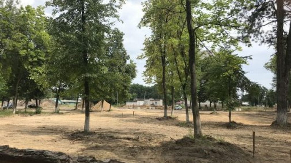 В июле подрядчик расчистил территорию. Снесли ветхие сооружения, убрали фундаменты, разровняли старые дорожки, выкорчевали 30 деревьев и часть ограды. Приступили к планированию строительных работ.