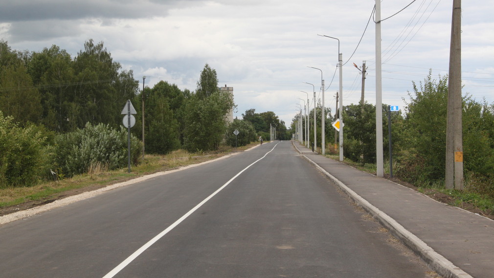 На первом этапе работ появился тротуар, установлено наружное освещение. Нанесена разметка горячим термопластиком, помогающая придерживаться полосы.