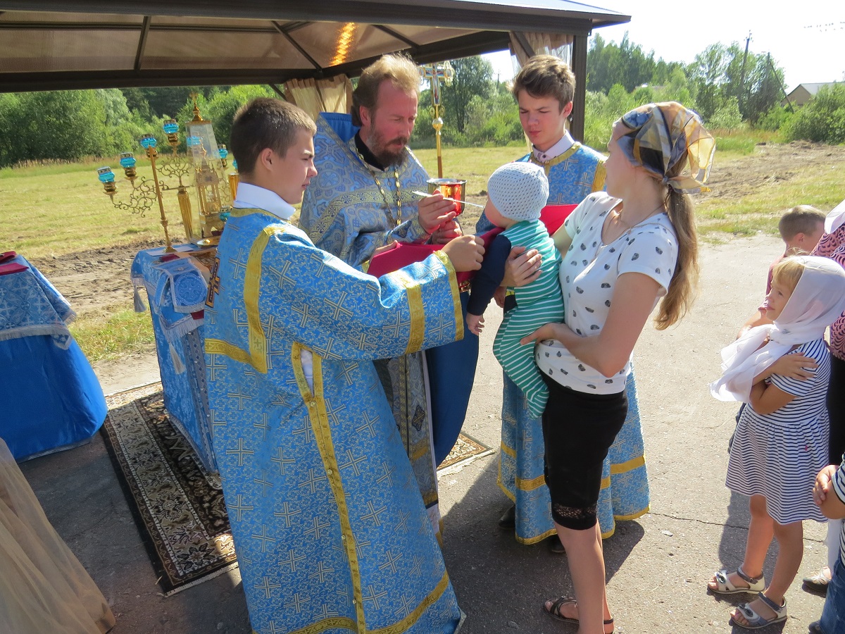 Его Высокопреподобию сослужили клирики благочиния протоиерей Леонид Бугакин и протоиерей Михаил Тришкин. По просьбе местных жителей и при поддержке местной администрации богослужение было проведено на месте будущего храма, который планируется освятить в честь иконы Божией Матери «Умягчение злых сердец». В июне прошлого года здесь был освящен закладной камень и установлен Поклонный Крест.