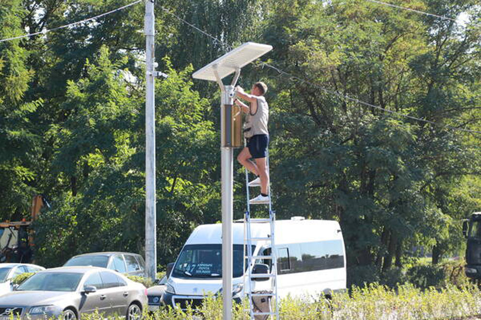 Современные светодиодные фонари уже освещают сквер в вечернее и ночное время. Установлено акустическое оборудование. Скоро в сквере будет играть музыка.