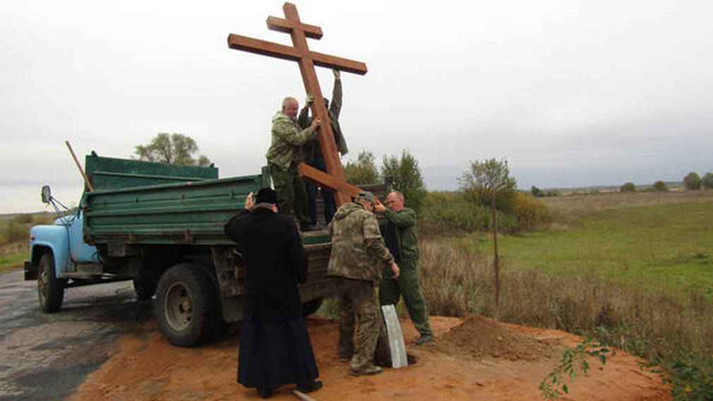 Православный атрибут воздвигли на выезде в город по направлению в деревню Попелевка. Создали монумент волонтеры Успенского храма.