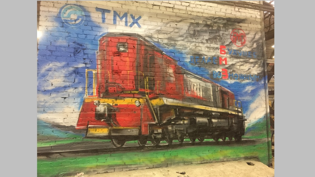 7 октября художник из Брянска Виталий Короткий опубликовал в соцсети «ВКонтакте» снимки своих новых работ. Изображение стремительного тепловоза появилось около малярного цеха БМЗ.БМЗ входит в число системообразующих для экономики Брянской области предприятий региона и в АО «Трансмашхолдинг», являющееся лидером среди производителей железнодорожного и городского рельсового транспорта в России и СНГ.