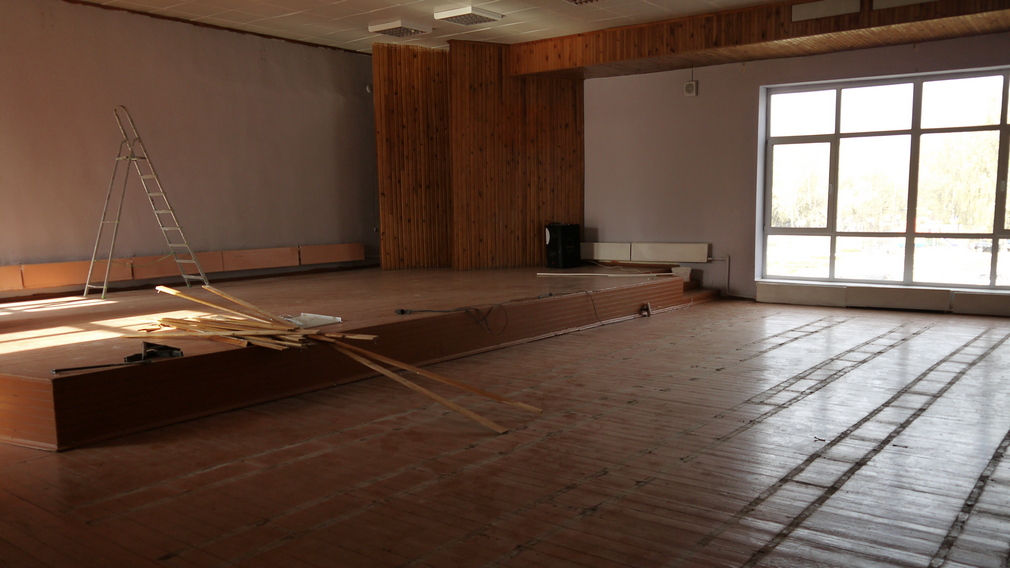 Работники ДК своими силами демонтируют жалюзи, кресла, старые перегородки в малом зале. Планируется, что в конце нынешнего года обновлённый ДК начнёт работу.