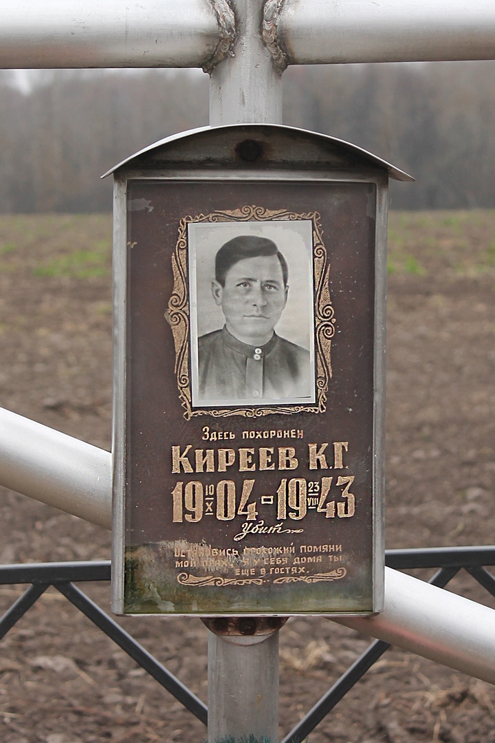 -Ефрейтор Киреев был убит на этом месте в возрасте 39 лет, отдав свою жизнь за мирное небо над нашей головой. И хотя сегодня его могила находится в чистом поле, сюда приходят люди, молятся у его надгробного креста, читают высеченные для нас на памятнике слова: «Остановись, прохожий, помяни мой прах. Я у себя дома, ты еще в гостях». Мы все — в гостях у временной жизни, и да сподобит всех нас Господь и жизни вечной.