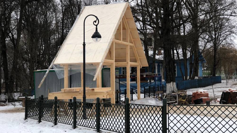 Как рассказали «Брянские новости», в локотской усадьбе Михаила Романова начали сооружать входную группу. Строители делают деревянные ворота-терем. От них начинаются дорожки усадьбы.