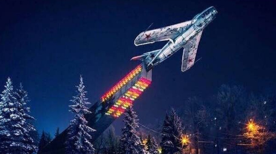 В Брянске накануне Нового года украсили знаменитый самолет возле гипермаркета «Линия 1». Самолет — символ героизма советских летчиков в борьбе против вражеской авиации в годы Великой Отечественной войны.