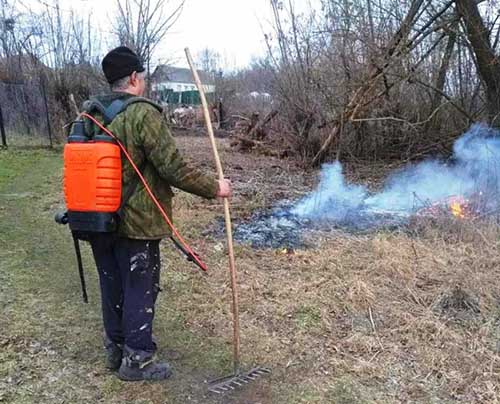 Помимо вышеизложенного Правилами устанавливается еще ряд требований к организации работ с использованием открытого огня — должен осуществляться контроль за нераспространением горения (тления) за пределы очаговой зоны. После этого место очага горения должно быть засыпано землей (песком) или залито водой до полного прекращения горения (тления).
