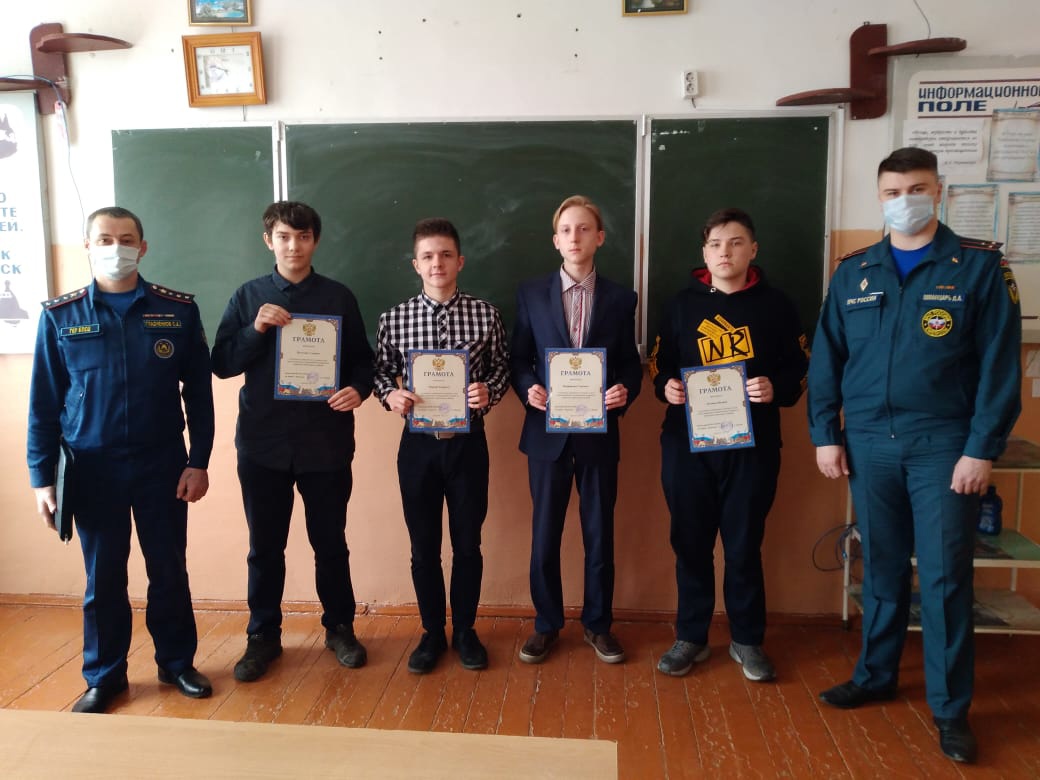 Награда быстро нашла своих героев. 21 апреля дознаватель отделения надзорной деятельности и профилактической работы по Карачевскому району ГУ МЧС России по Брянской области Дмитрий Александрович Шманцарь и заместитель начальника ПСЧ № 42 по охране г. Карачев ГКУ «Брянский пожарно-спасательный центр» Сергей Александрович Гладченков вручили ребятам благодарственные грамоты, отметив, что школьники не остались равнодушными к беде, а проявили храбрость, начав тушить вспыхнувшую сухую траву.