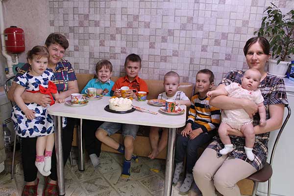 Конечно, шестерых детей воспитывать нелегко. Как рассказала молодая мама, характеры, да и вкусы на еду у всех разные: кто-то любит «молочку», а кто-то — мясо и котлеты, «а Дим Димычу хоть каждый день картошку подавай, поди, приспособься…». Единственная проблема — нехватка жилого помещения, так как все 9 человек, включая свекровь, живут в доме площадью 50 квадратных метров.