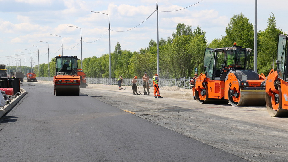 От проспекта Московского до реки Снежеть завершается укладка среднего слоя асфальта. На участке от моста через Снежеть до разворотного кольца у железнодорожного вокзала Брянск-I устройство земполотна готово уже на 95%. На втором участке дороги на 40% готово основание из щебня, на 22% — устройство слоя «тощего» бетона. Всего на строительство дороги ушло около 1 млн м³ песка.