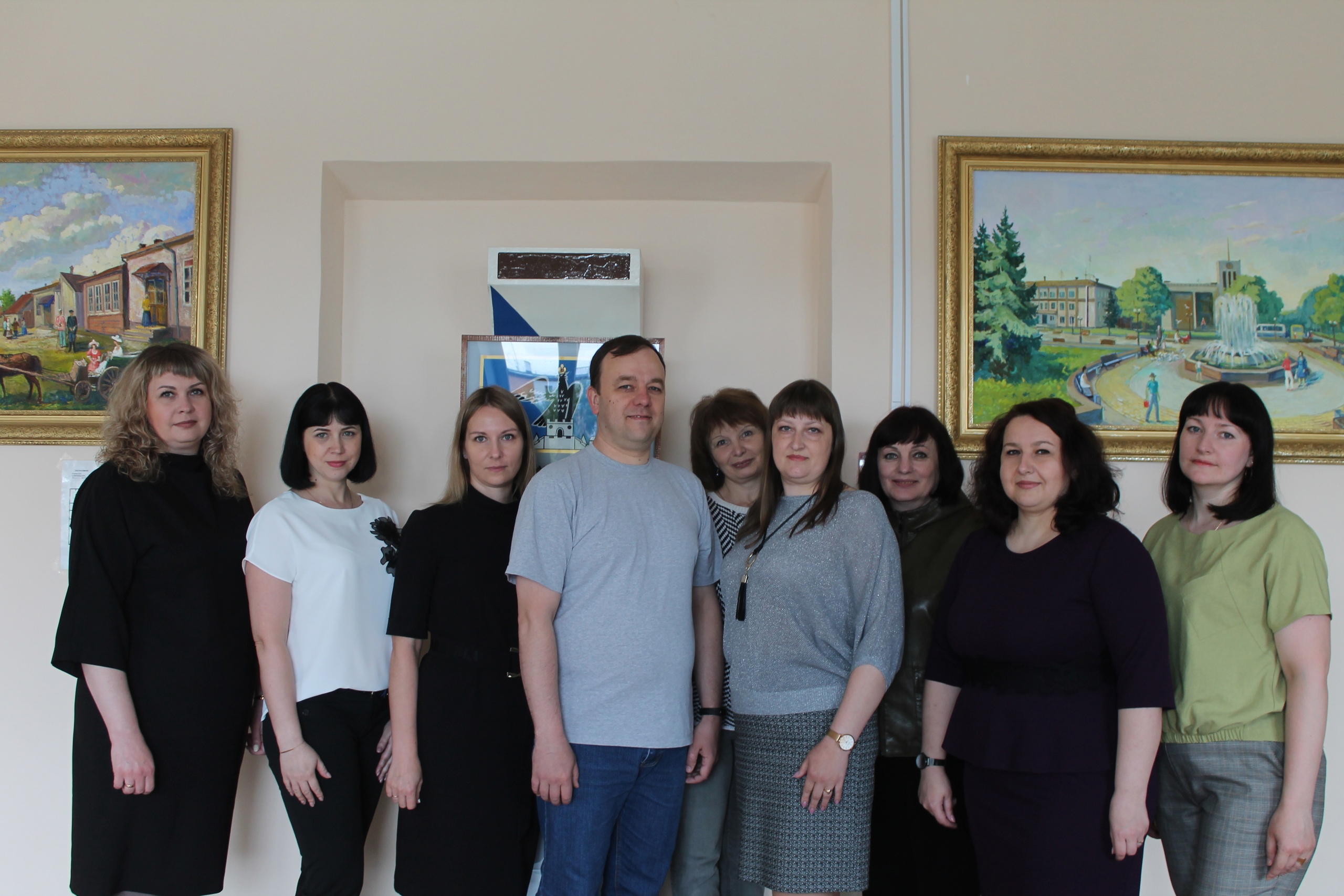 На снимке слева направо: И.Л.Черемнова,Е.А.Сычева,М.В.Симочкина, И.М.Козяков,Л.Н.Федорченко,С.Н.Герасина,В.М.Теплова,Л.В.Загрядская,А.А.Никифорова.