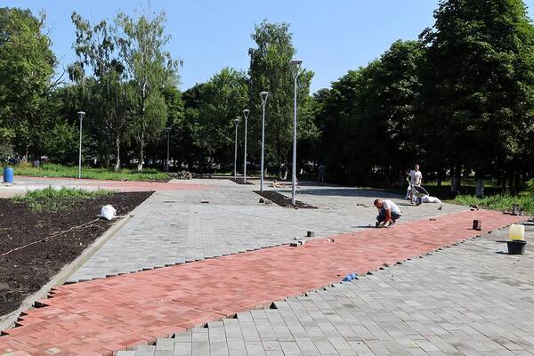 На центральных аллеях практически уложена тротуарная плитка, смонтировано освещение. Также формируется пешеходная дорожка вдоль улицы Брянской Пролетарской дивизии. На следующей неделе на территории высядят туи, кизильник, спирею, всего около 500 саженцев.