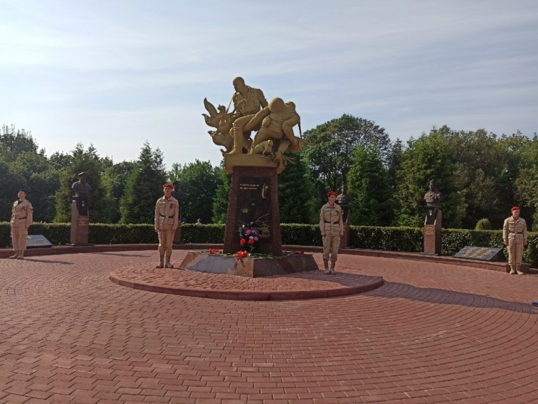 Около памятника в почетном карауле замерли юнармейцы. Участники мероприятия провели минуту молчания в память о погибших десантниках. А затем возложили цветы к пьедесталу монумента.