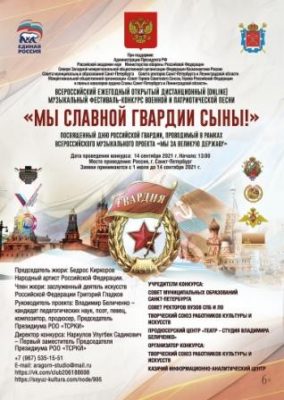 Всероссийский ежегодный открытый дистанционный (online) музыкальный фестиваль-конкурс военной и патриотической песни «Мы славной Гвардии сыны!», проводимый в рамках Всероссийского музыкального проекта «Мы за Великую Державу», приурочен ко Дню