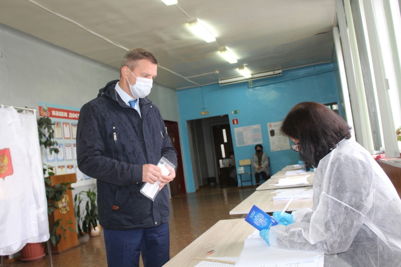Избирательный участок №433 находится в здании средней школы №4. На входе измеряют температуру и вручают индивидуальный пакет с маской , перчатками и ручкой.