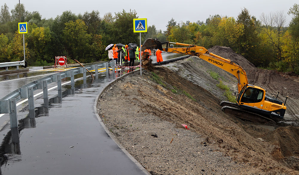 Ранее мы сообщали, что в Брянске из-за дождя размыло новую дорогу-дамбу и образовался провал. Сегодня, 20 сентября, стало известно, что подрядчик начал восстановительные работы пострадавшего съезда. Об этом сообщили в горадминистрации.