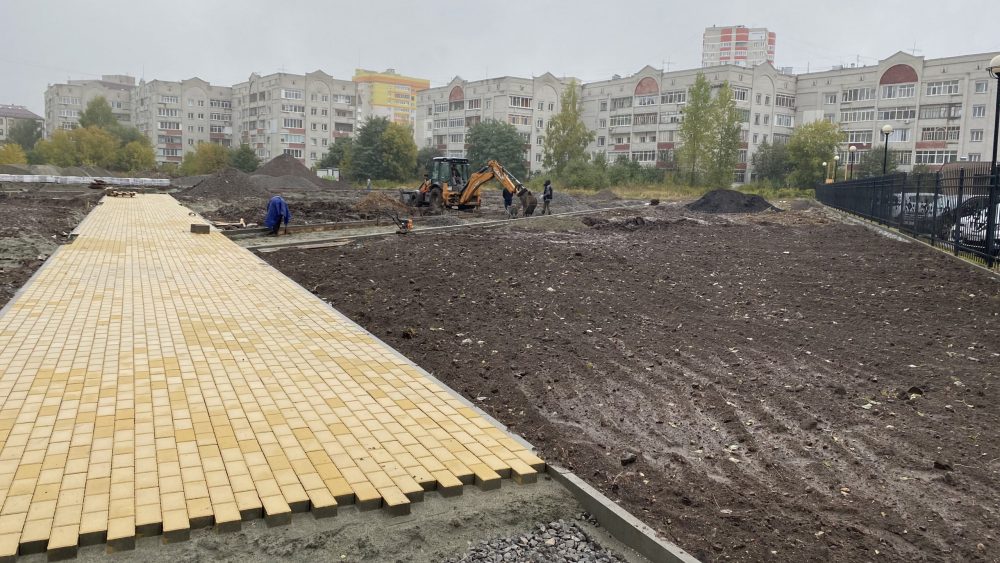Как сообщают «Брянские новости», в сквере рядом с областной прокуратурой продолжаются работы. В данный момент стали укладывать плитку, появились направления будущих дорожек.