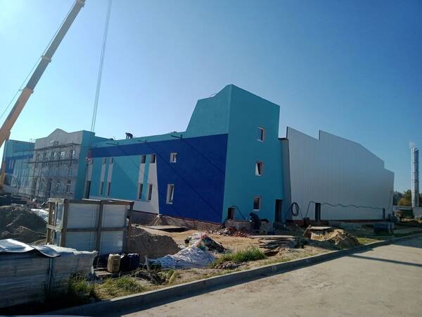 По плану в строящемся дворце спорта ледовая арена 60 на 30 метров с трибунами на 63 человека и двухэтажный административно-бытовой блок.