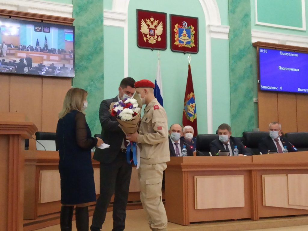 В начале заседания сенатор Галина Солодун вручила медаль Совета Федерации «За проявленное мужество». Это награда юных героев. Ее удостоен 14-летний подросток из Жирятино Евгений Валучев. Он спас утопающего в реке человека. Смог вытащить на берег взрослого человека.