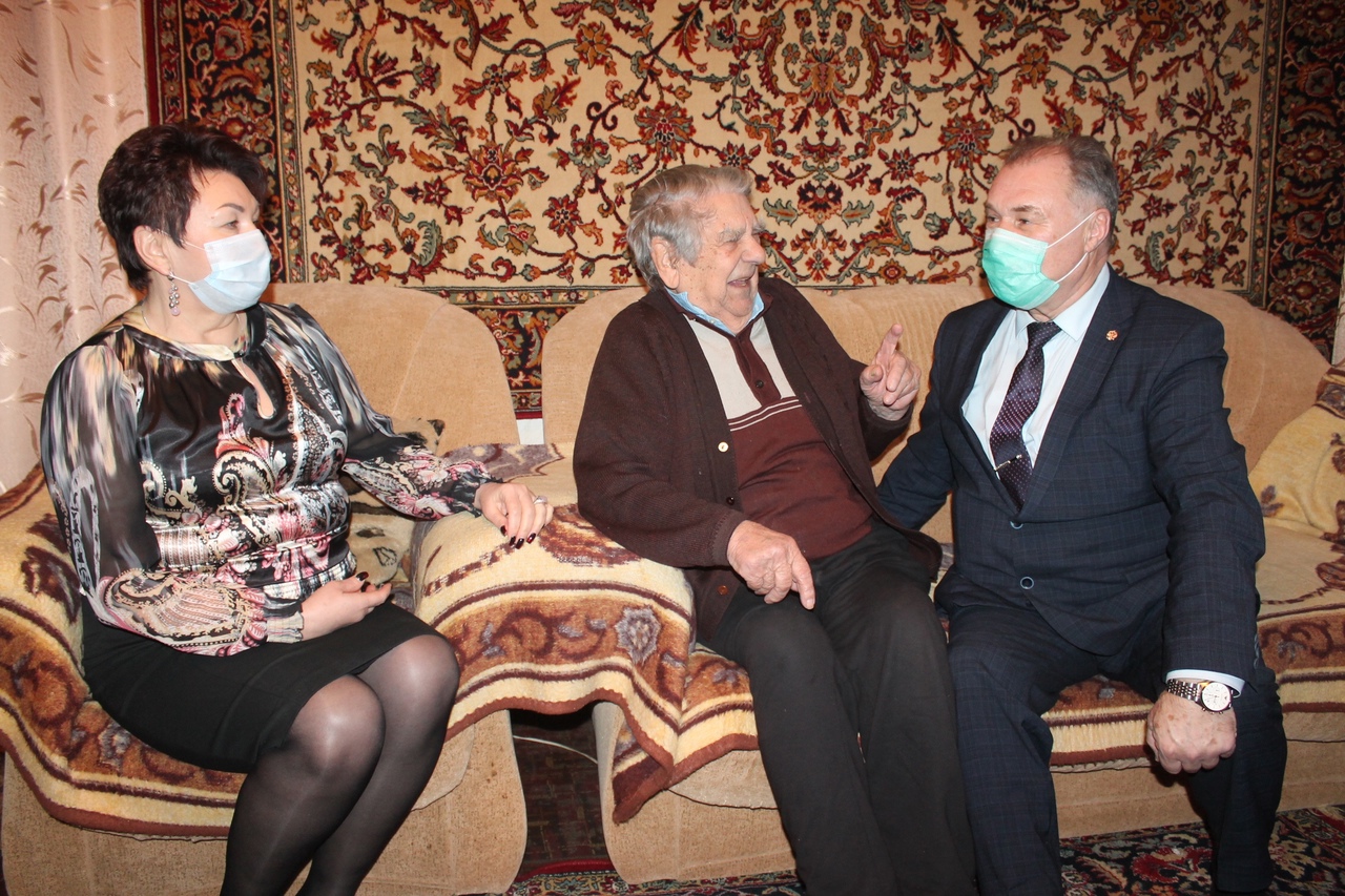 Врио главы администрации района Л.В. Филин и замглавы райадминистрации С.В. Шутова навестили на дому ветерана Великой Отечественной войны Евгения Филипповича Полякова.