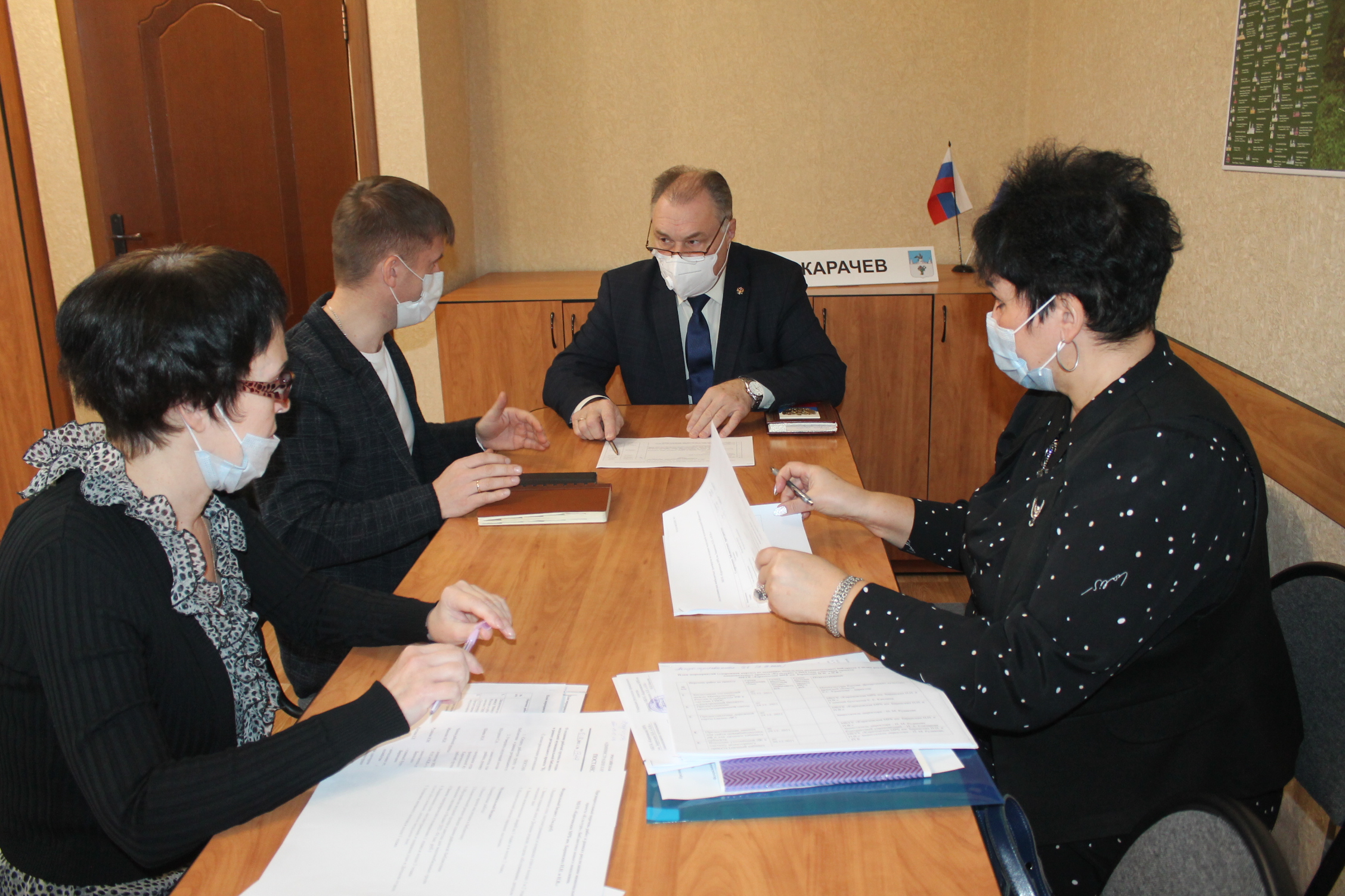 Сегодня в администрации района прошло рабочее совещание, на котором обсуждались очередные этапы развития межпоселенческой библиотеки им. Н.Н. и Н.В. Баранских. Среди участников — врио главы администрации района Леонид Васильевич Филин, заместитель С.А. Шкуркин, начальник отдела культуры М.Н. Шаева, директор библиотеки М.И. Иванова.